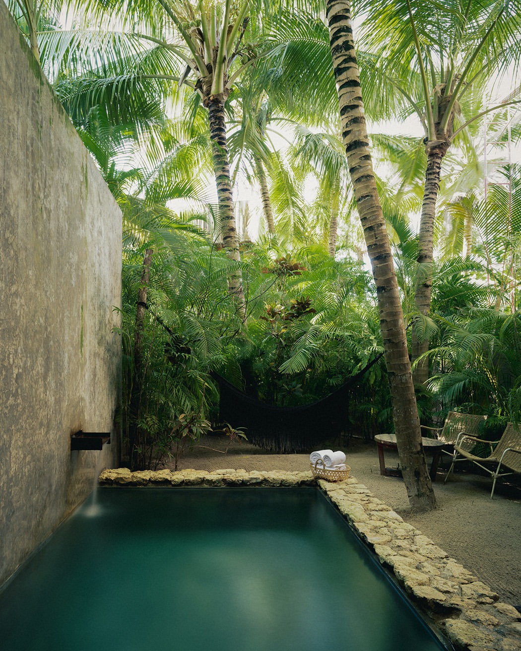 Stay in a serene, jungle-inspired environment where each room is designed with natural materials and a bohemian aesthetic, offering a peaceful connection to Tulum’s lush surroundings.