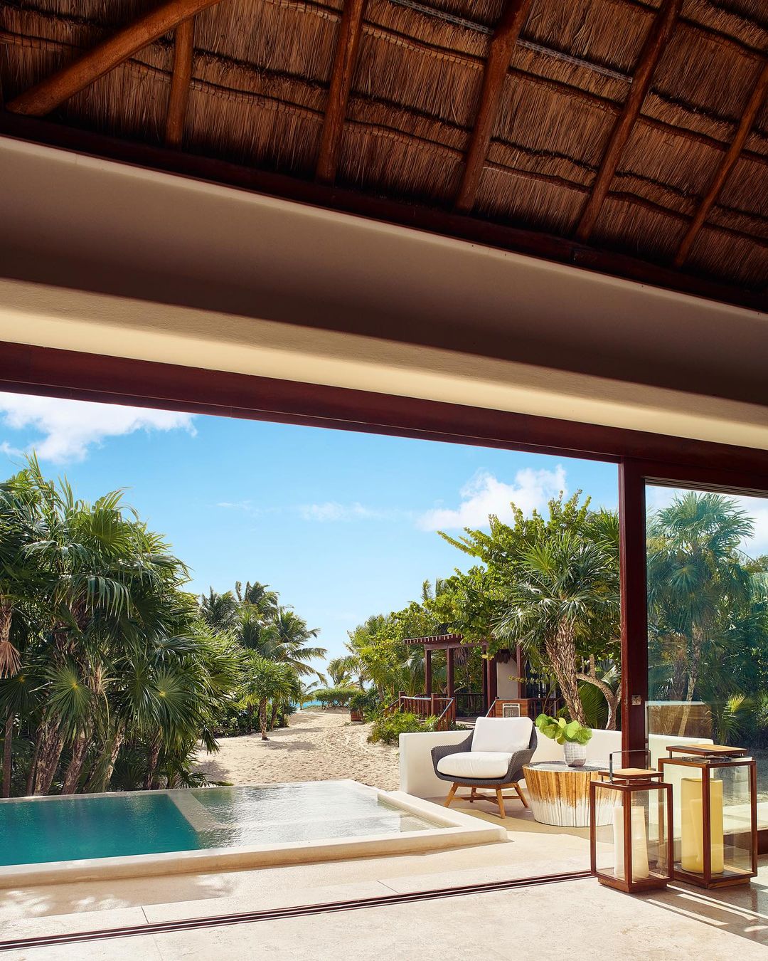 The architecture of Casa Chablé is carefully integrated into the pristine environment of Sian Ka’an, respecting the delicate balance of the reserve while offering panoramic views of the Caribbean and the surrounding jungle. The villas and suites, constructed with sustainable materials such as local wood and natural stone, are inspired by traditional Mexican architecture, combining rustic elegance with modern comforts. Each space is designed to maximize the connection with nature, featuring spacious terraces, outdoor showers, and large windows that allow natural light and breathtaking views to become an integral part of the experience.
